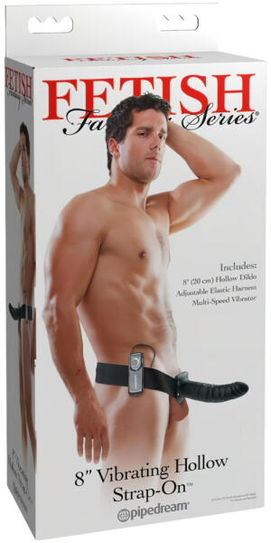 Fetish Strap-On 8 - felcsatolható, üreges vibrátor (fekete)